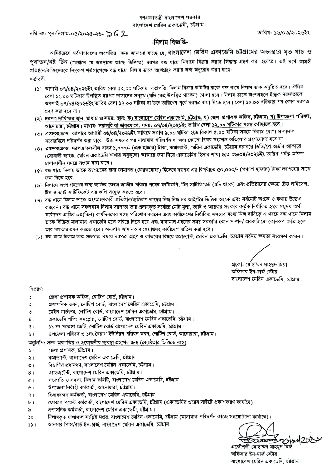 কন্টেন্ট: নোটিশ প্রকাশের তারিখ: ১৬-০৩-২০২৬ আর্কাইভ তারিখ: ৩১-০৫-২০২৬